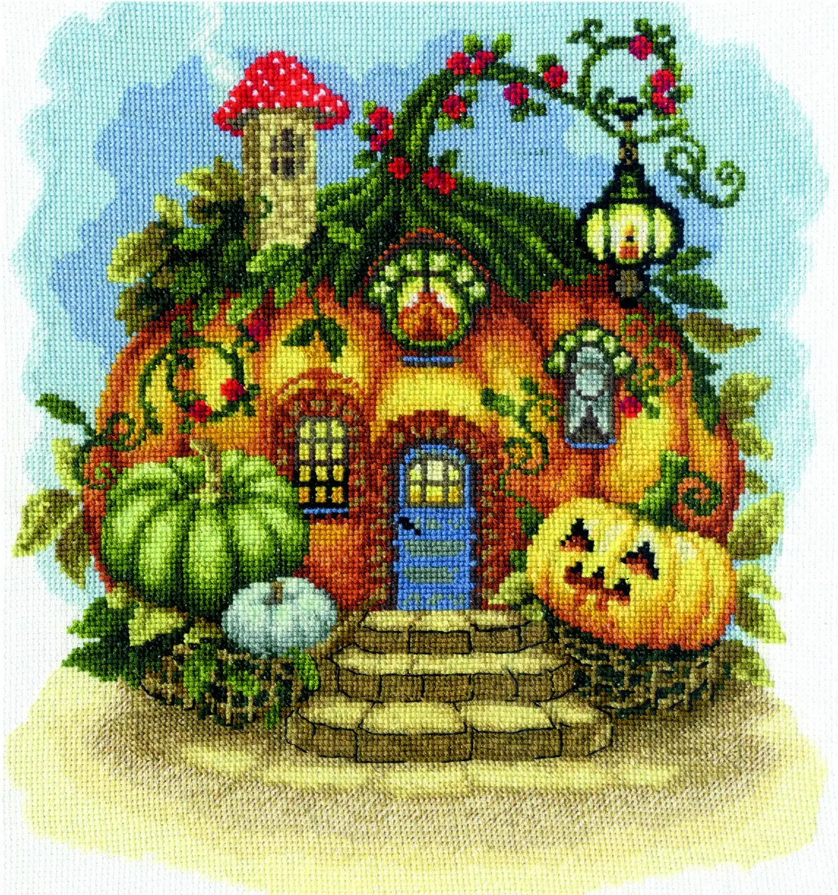 Create a cozy Halloween atmosphere with this charming and magical design from Charivna Myt. The center of the composition features a cute pumpkin house, surrounded by small decorative Halloween-style pumpkins. The artwork feels warm, whimsical, and festive — a perfect choice for autumn décor.Size of the finished work: 22*24.5cm.