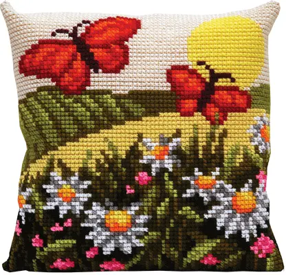 The kit contains: color scheme, printed embroidery stramin, yarn (acryl) – 19 colors and a needle.