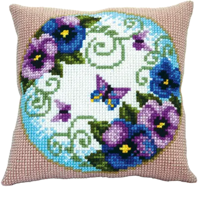 The kit contains: color scheme, printed embroidery stramin, yarn (acryl) – 17 colors and a needle.