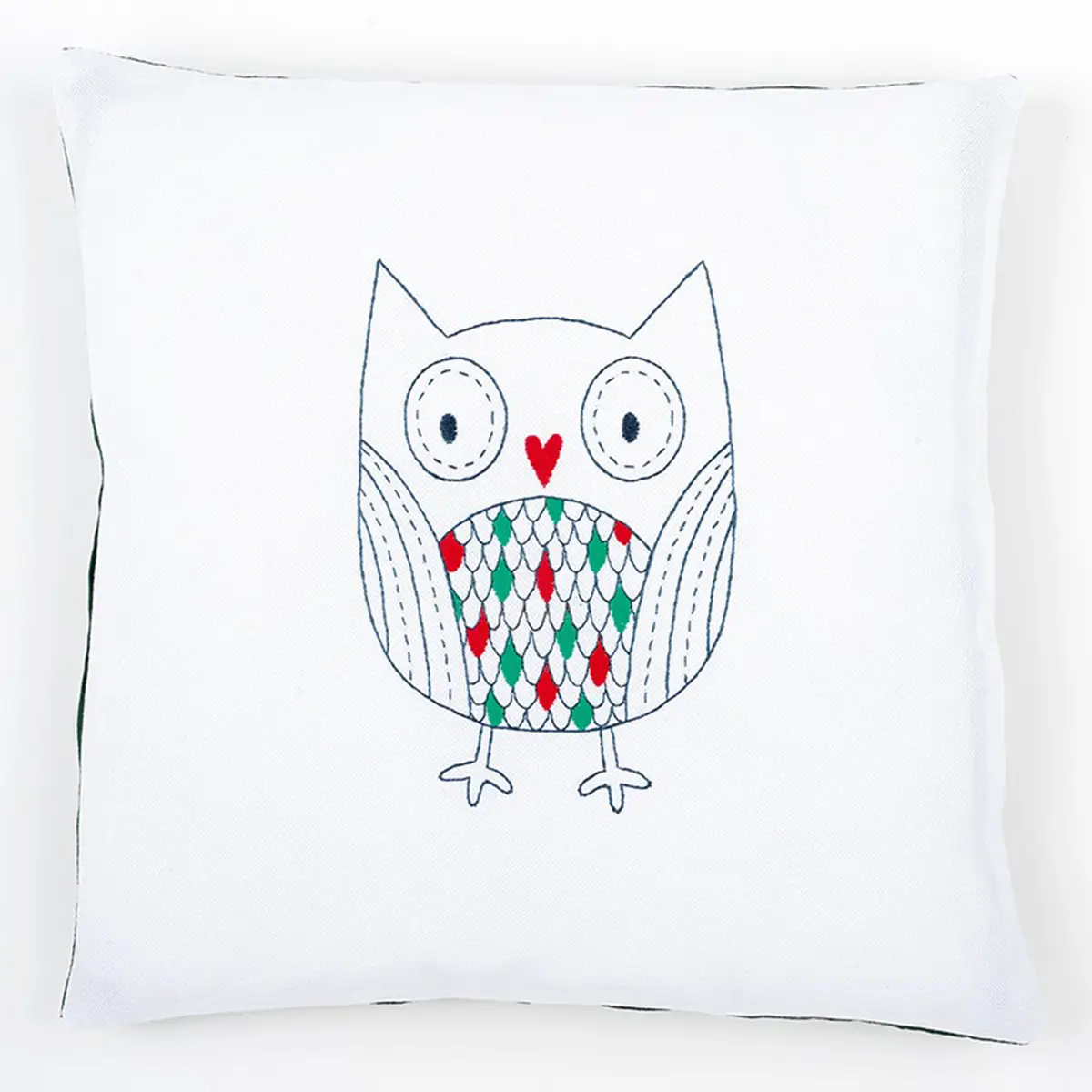 The kit contains: instruction chart, symbol pattern, cotton uniweave with printed picture (washable), cotton mouline DMC - 3 colors, a needle and backside of pillowcase with zipper.