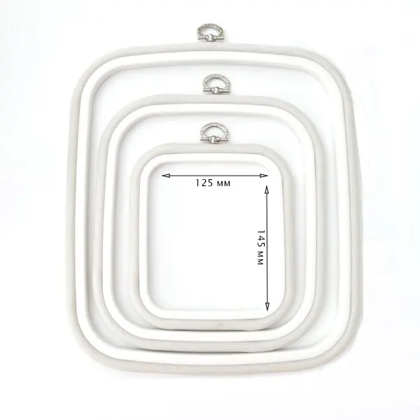 230-11 Пяльцы-рамка Nurge квадрат каучуковые с подвесом, высота обода 10мм, 125*145мм (белые). Catalog. Embroidery and sewing. Tambour